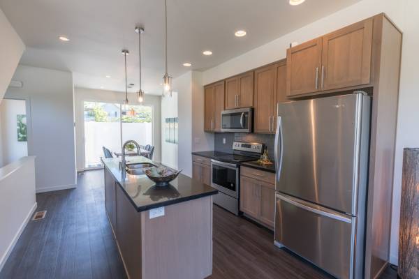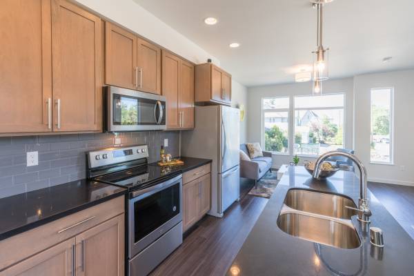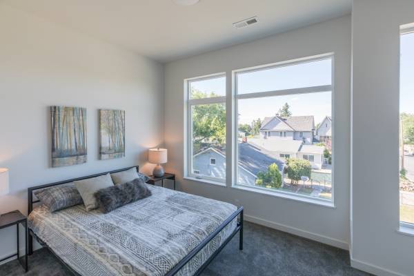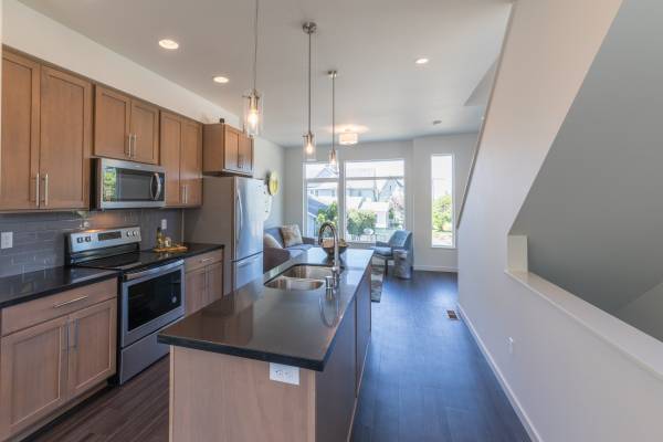 Perry District townhouse. Quality finishes including LTV flooring, quartz counter tops, full stainless appliance package, ceramic tiled shower and bath. Main floor has Open floor plan with 9′ ceilings, living room kitchen dining area with 8′ sliders to private fenced patio, and half bath. Lower level is oversize garage with glass overhead door and huge storage room. The top floor has 2 bedrooms, 1 bath, laundry (washer/dryer included). Forced Air gas heat plus Central Air conditioning. Offered by R.H.Cooke and Associates, Inc. Realtors. Basic qualifying guidelines for this property are minimum 650 credit score and verifiable income of $5,400 per month. Rent is $1,800 per month, $1,800 deposit, one year lease. No indoor smoking. For more information, please visit www.rhcooke.com This is an un-furnished townhouse. Prorate first month rent, last month rent, and deposit required. Owner may consider one small dog under 22# with a $400 non-refundable pet fee. Landlord pays water, sewer, garbage. Tenant responsible for gas and electric. Avista Utilities (gas and electric) history for past 12 months had a high of $95, low of $63, and average of $78 and this will change depending on your energy habits. $235 carpet cleaning fee at time of move-out. $30 application fee per occupant 18 and older. File photos and some may be of a identical unit in the building.